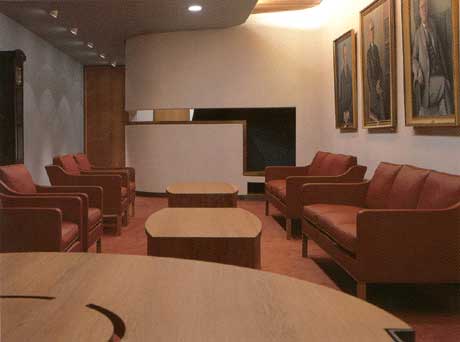 Á veggnum hangir málverk af Lárusi Jóhannessyni hæstaréttardómara 1960-1964, en hann hafði áður stundað málflutning í nærfellt fjóra áratugi og meðal annars verið formaður Lögmannafélags Íslands í 13 ár.
