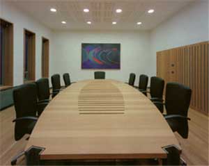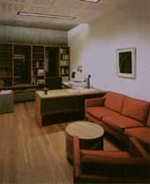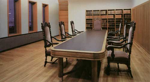 Séð inn í vinnustofu hæstaréttardómara, en allir dómararnir hafa svipaða aðstöðu.