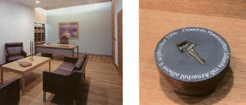 Í skrifstofu forseta eru ýmsir góðir gripir, sem réttinum hafa verið gefnir.